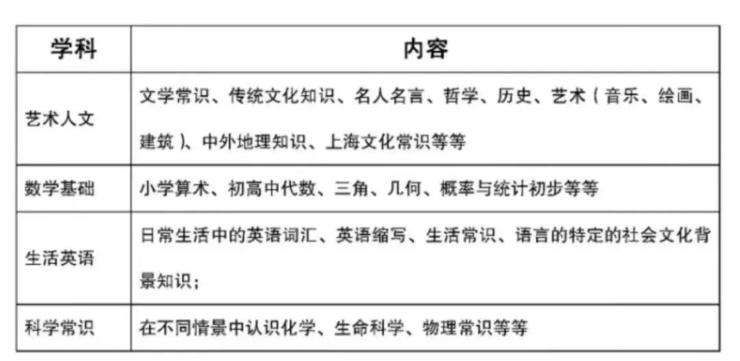 入學測試150分:【包括藝術人文、數學基礎、生活英語、科學常識四大模塊】考試時間90分鐘。