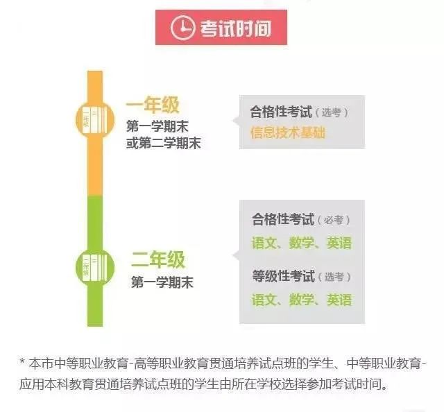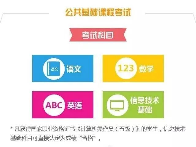 中職學業水平測試分科目有語文、數學、英語、信息技術基礎四門科目。其中《信息技術基礎》僅僅有合格考,并且為選考科目。
