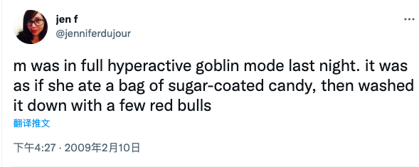 雖然是2022年的年度詞匯,但Goblin mode這個短語的來源要追溯到2009年,一名推特的博主發了一條消息,首次使用了Goblin mode這個短語。