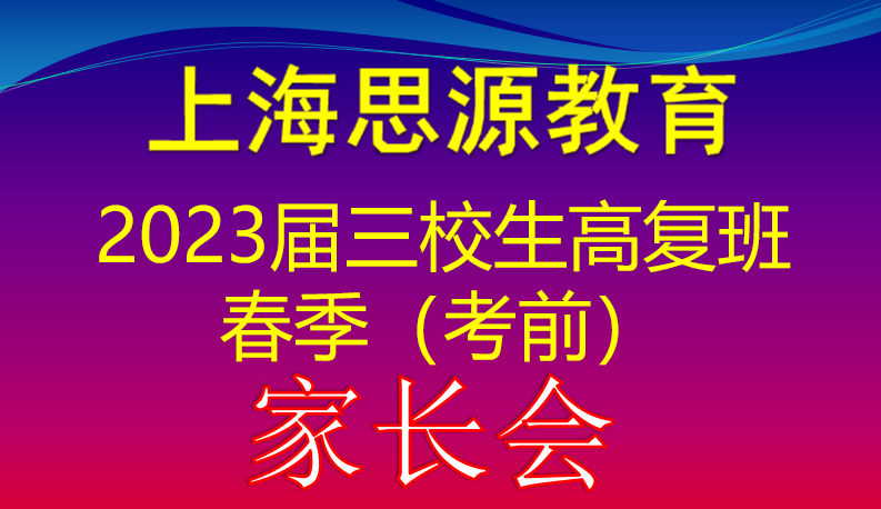 3月6下午,思源教育2023屆三校生高復班春季(考前)家長會在徐匯校區、龍漕路校區、浦東校區先后舉行。會議由思源高復專家黃老師主講,首先代表學校感謝家長一直以來對思源的大力支持,與家長通報了學生春季的教學情況和在校期間的綜合表現,此次家長會主要是針對即將到來的三月考,從專業的角度給家長和學生們填報志愿的方向和建議。