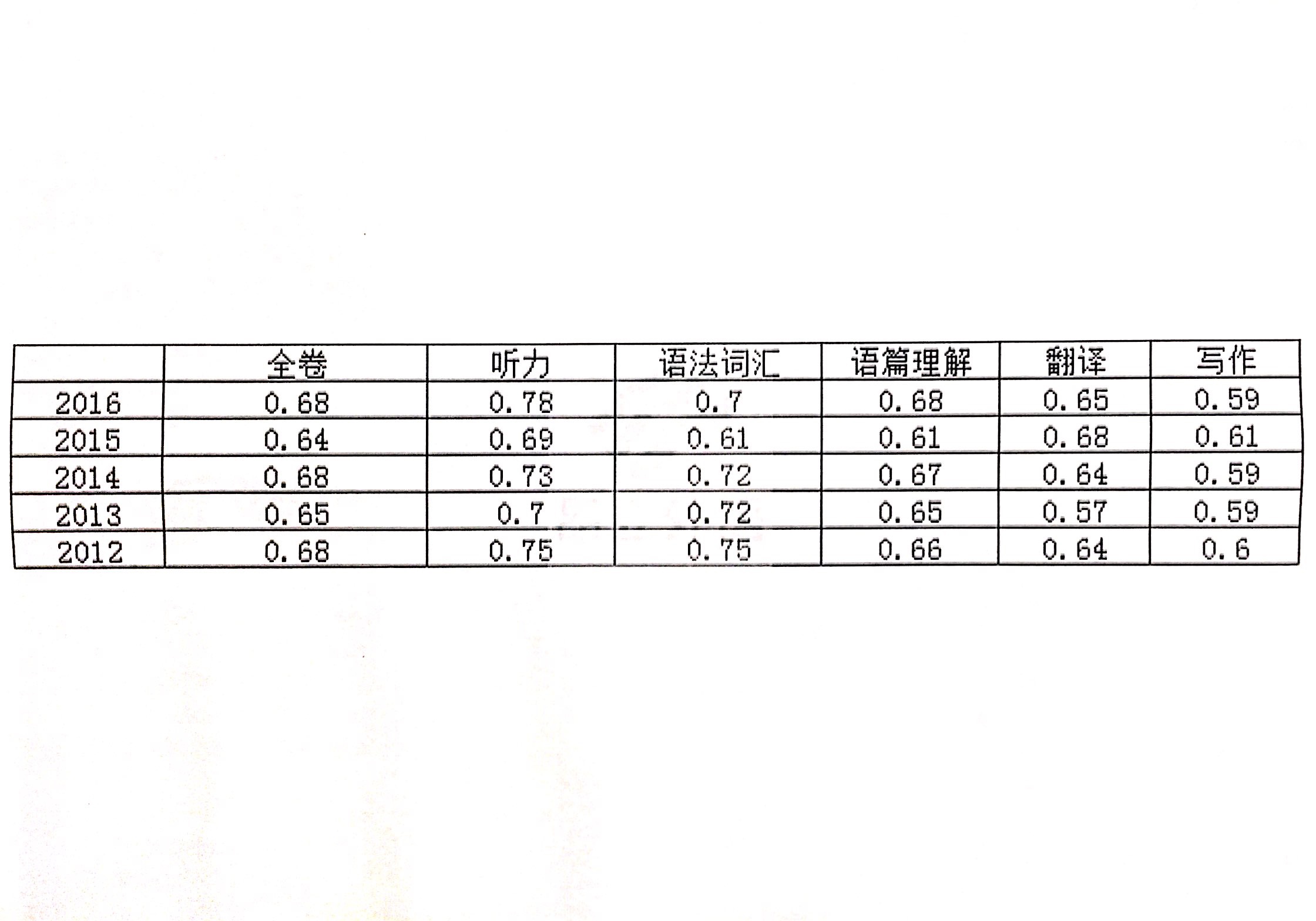 數(shù)據(jù)|2012-2016歷年高考英語得分情況