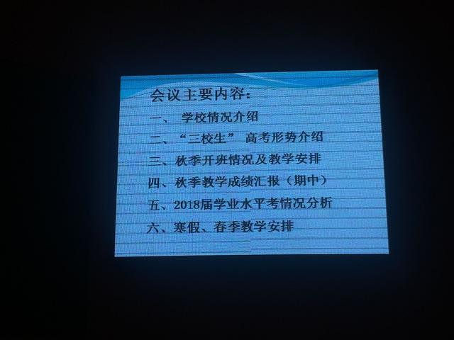 思源三校生高復的資深老師黃建平從六個方面給大家解讀:學校情況介紹、“三校生”高考形勢介紹、秋季開班情況及教學安排、秋季教學成績匯報(其中)、2018屆學業水平考情況分析、寒假、春季教學安排。