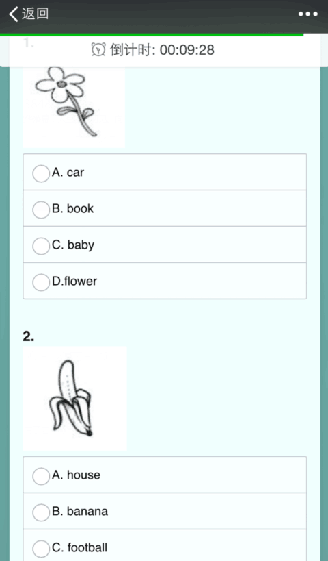 點擊下方菜單“英語測試”即可進入測試頁面。