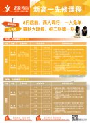 新高一先修課程公開課 聚焦開學分班考,初高中知識銜接過渡完全攻略 科目:英語 時間:6月24日上午8:40-10:10 主講人:四校英語名師,熟悉英語命題考察要點,有效破解高考一年兩試得分密碼。 科目:數學 時間:6月24日上午10:20-11:50 主講人:知名重點中學理科班競賽課程專任講師 咨詢電話:400-889-8990 在線預約 徐匯中學生校區 暑期新高一先修課程暑秋課程安排 在線預約...