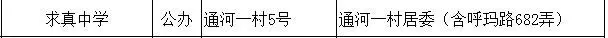 接下來(lái)是求真中學(xué)。求真中學(xué)在通河地區(qū)的通河一村,他的對(duì)口范圍是這樣的: