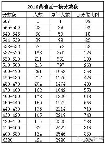 附:2016黃浦區初三一模區排名