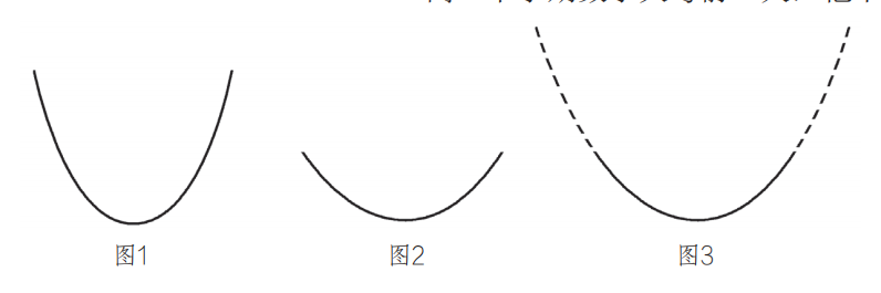高二下學期數(shù)學大考前一天,他不去對付明天的考試,而在鉆研解析幾何的一個題目。他發(fā)現(xiàn)一個有趣的事實,興沖沖地跑來跟我說: “ 周老師, ‘一切拋物線都是相似的’,我發(fā)現(xiàn)的!”此時此刻他的高興勁是難以言表的。我有點將信將疑,對他說:“拋物線開口有大、有小, 你作何解釋?”隨即畫出圖1、圖2追問他,他胸有成竹,將圖2的拋物線向兩方適當延長成圖3后,指著圖3對我說:這不是和圖1中的拋物線相似了嗎?他還說,兩個大小不同的圓,相切于一點P,在點P處兩個圓弧開口大小看上去不同,但事實上所有的圓都是相似的。聽了他的解釋,我信服了,于是跟他開玩笑說:你發(fā)現(xiàn)了一個“水根定理”。他馬上說:不,不!我還沒有證明。馬上又跑去找姚善源老師,當時姚老師卻沒有認可他的發(fā)現(xiàn)。