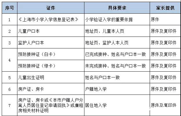本市戶籍的,家長須帶領(lǐng)適齡兒童,攜帶戶口簿、《入學信息登記表》、預(yù)防接種證,在居住地登記就讀的還需攜帶《本市戶籍人戶分離人員居住登記申請回執(zhí)》或廉租房相關(guān)材料證明等。