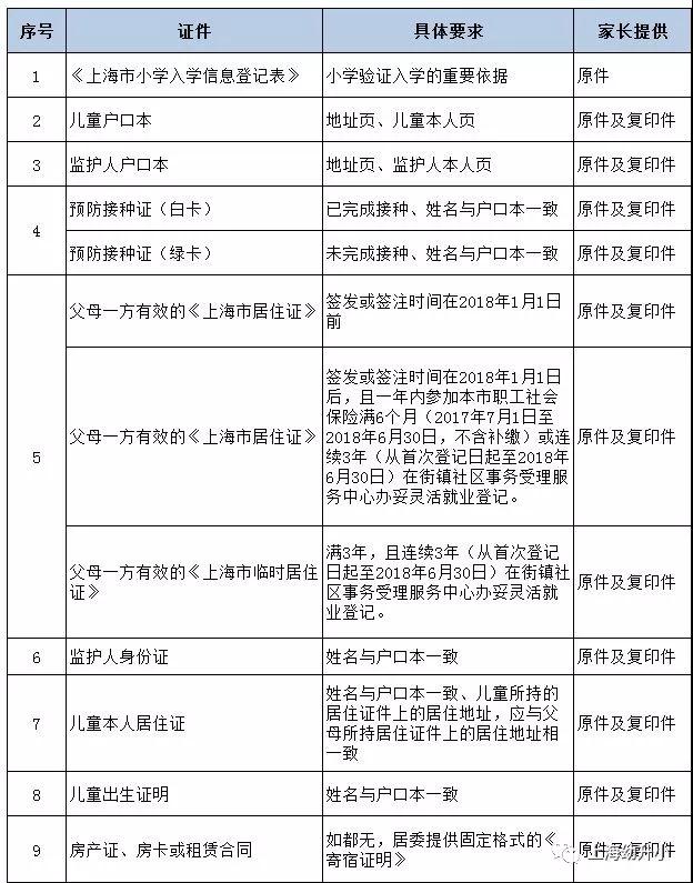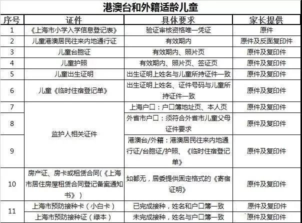 非本市戶籍的,家長須帶領(lǐng)適齡兒童,攜帶戶口簿、《入學信息登記表》、預(yù)防接種證、父母一方有效的《上海市居住證》(2018年1月1日前簽發(fā)或簽注),或2018年1月1日后申辦的《上海市居住證》(或有效期內(nèi)《上海市臨時居住證》)、參加本市職工社會保險證明或《就業(yè)失業(yè)登記證》,以及適齡兒童本人的合法居住證件。