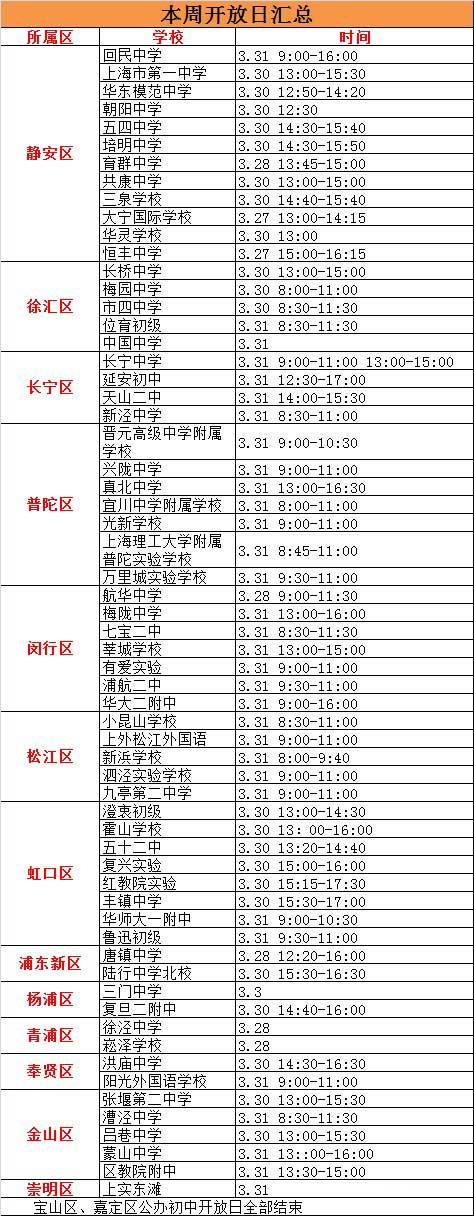 本周末上海各區公辦初中繼續集中展開校園開放日活動,而這也是上海最后一周的公辦初中校區開放日活動。家長們注意喲!