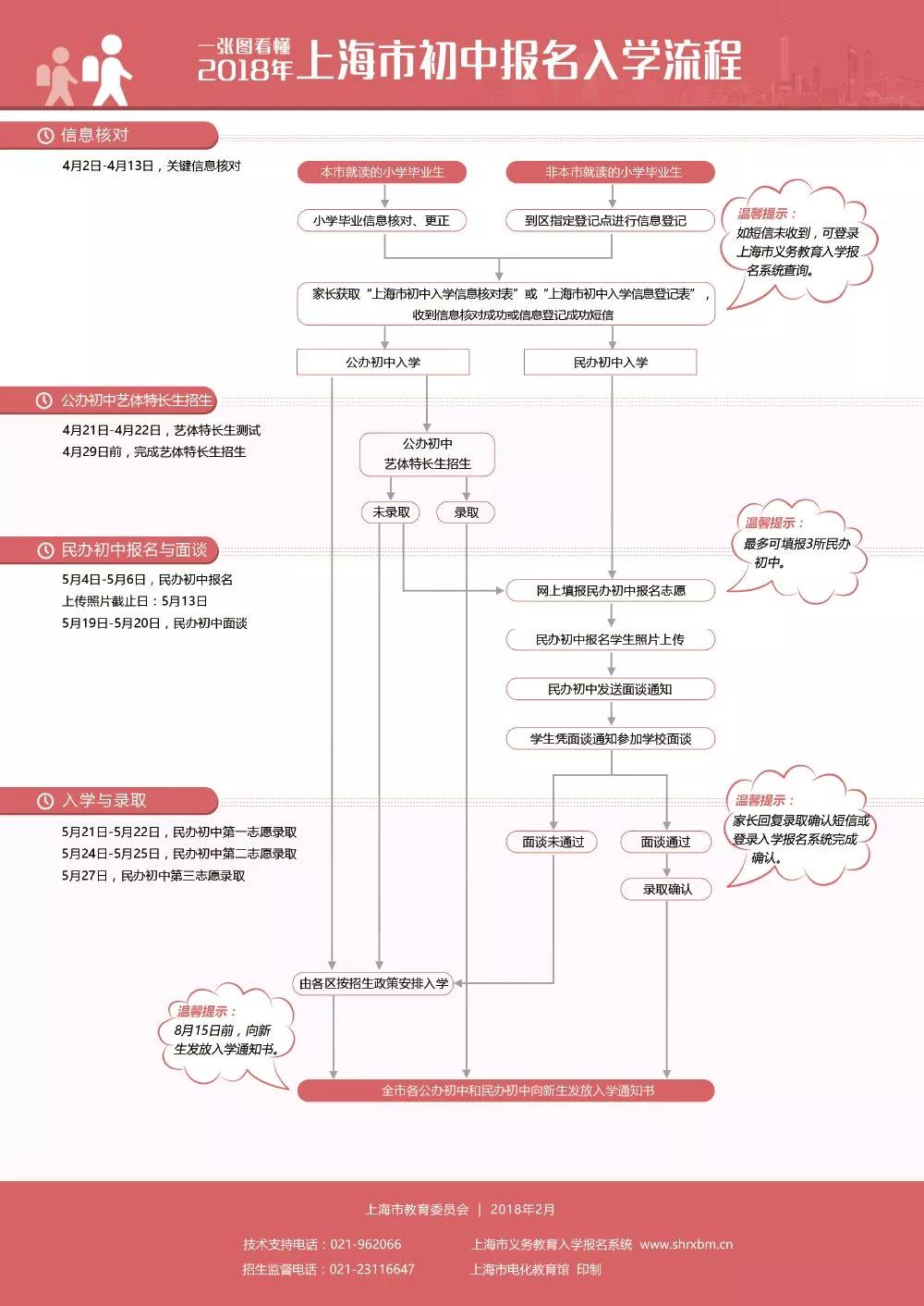 4月2日-4月13日,小學五年級學生家長須在學生就讀小學,核對 “入學報名系統”中的關鍵信息(戶籍地址、居住地地址等),并填寫家長手機號碼(作為家長接收初中入學信息的聯系方式),獲取《上海市初中入學信息核對表》。