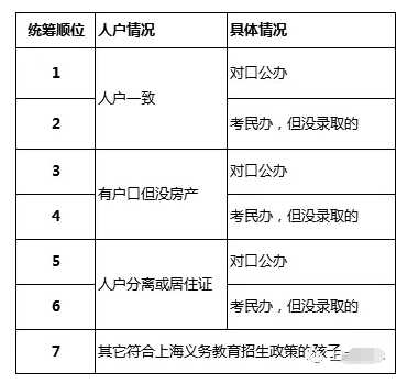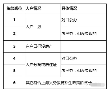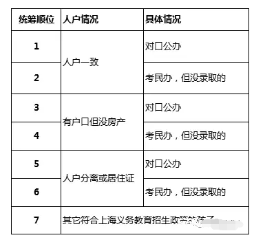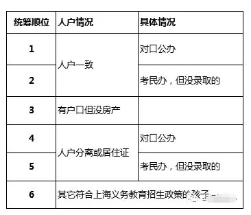 其實,統籌順位都基本會按照同樣的順序來,但是拆解細分到各區各學校,又會有所不同。比如熱門學校會在人戶一致這一檔的入戶年限以及戶口情況來進行排序。
