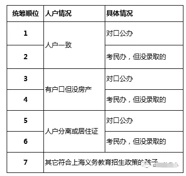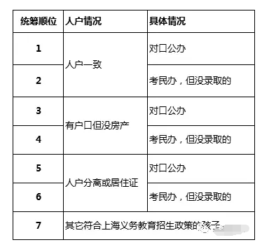 閔行區的統籌是“組內統籌”,根據錄取原則仍會優先安排人戶一致的孩子入學,未被民辦錄取的人戶一致孩子順位排在人戶分離前。
