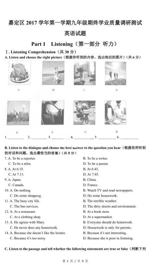 2018嘉定區上海一模考開考,思源教育小編第一時間整理了英語考卷的真題和答案解析,分享給大家。其他區的同學們可以參考嘉定區的考點和難度,最之后的沖刺復習。