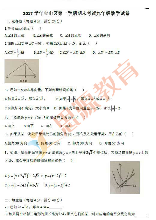 2018寶山區上海一模考開考,思源教育小編第一時間整理了數學考卷的真題和答案解析,分享給大家。其他區的同學們可以參考寶山區的考點和難度,做最后的沖刺復習。