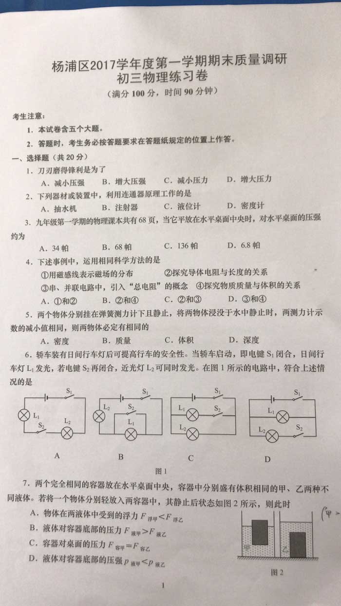 2018上海楊浦區一模考開考,思源教育小編第一時間整理了物理考卷的真題和答案解析,分享給大家。其他區的同學們可以參考楊浦區的考點和難度,最之后的沖刺復習。