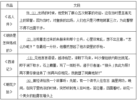 (1)在橫線上填寫與名著內容概述相對應的書名(范圍為指定的名著閱讀書目)。(2分)