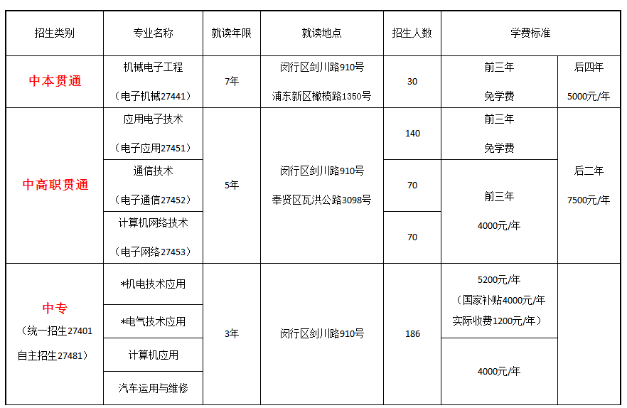 中高職貫通培養——學校是上海市教育委員會實施中高職教育貫通培養模式的首批四所試點學校之一,與上海電子信息職業技術學院已聯合招生了八屆貫通培養學生,前三屆畢業生就業率100%,分別就業于具有國際先進水平的電子信息技術應用領域和現代服務業。學生達到畢業要求可獲得上海電子信息職業技術學院專科畢業證書。