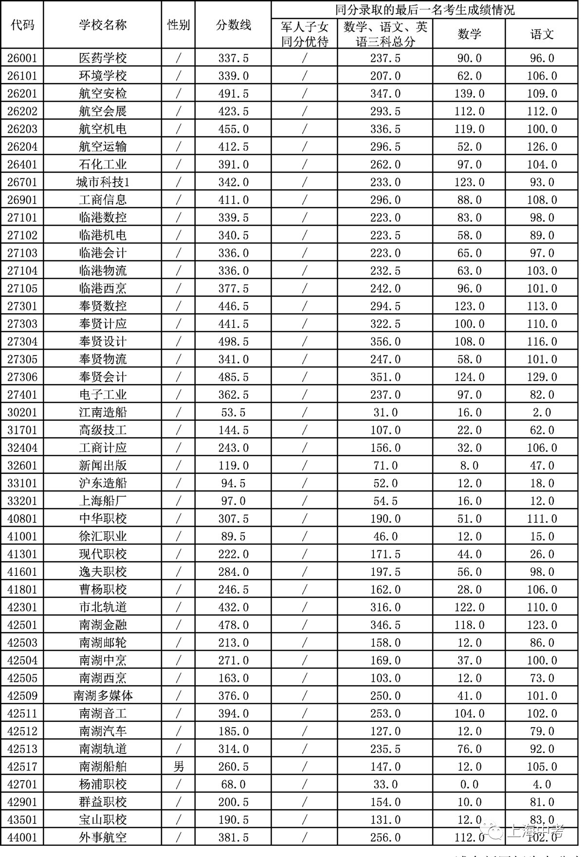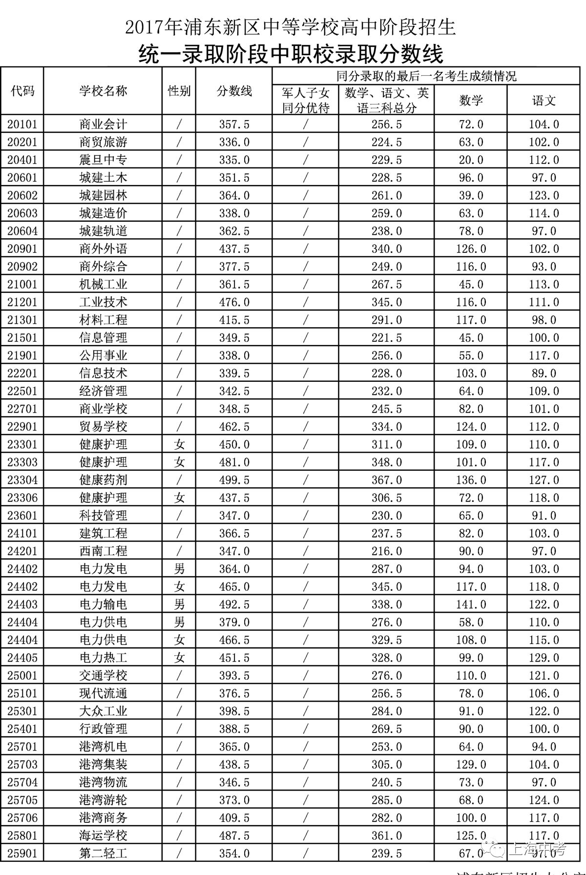 中職校只有幾個區的分數線,還有些區的木有,見諒;