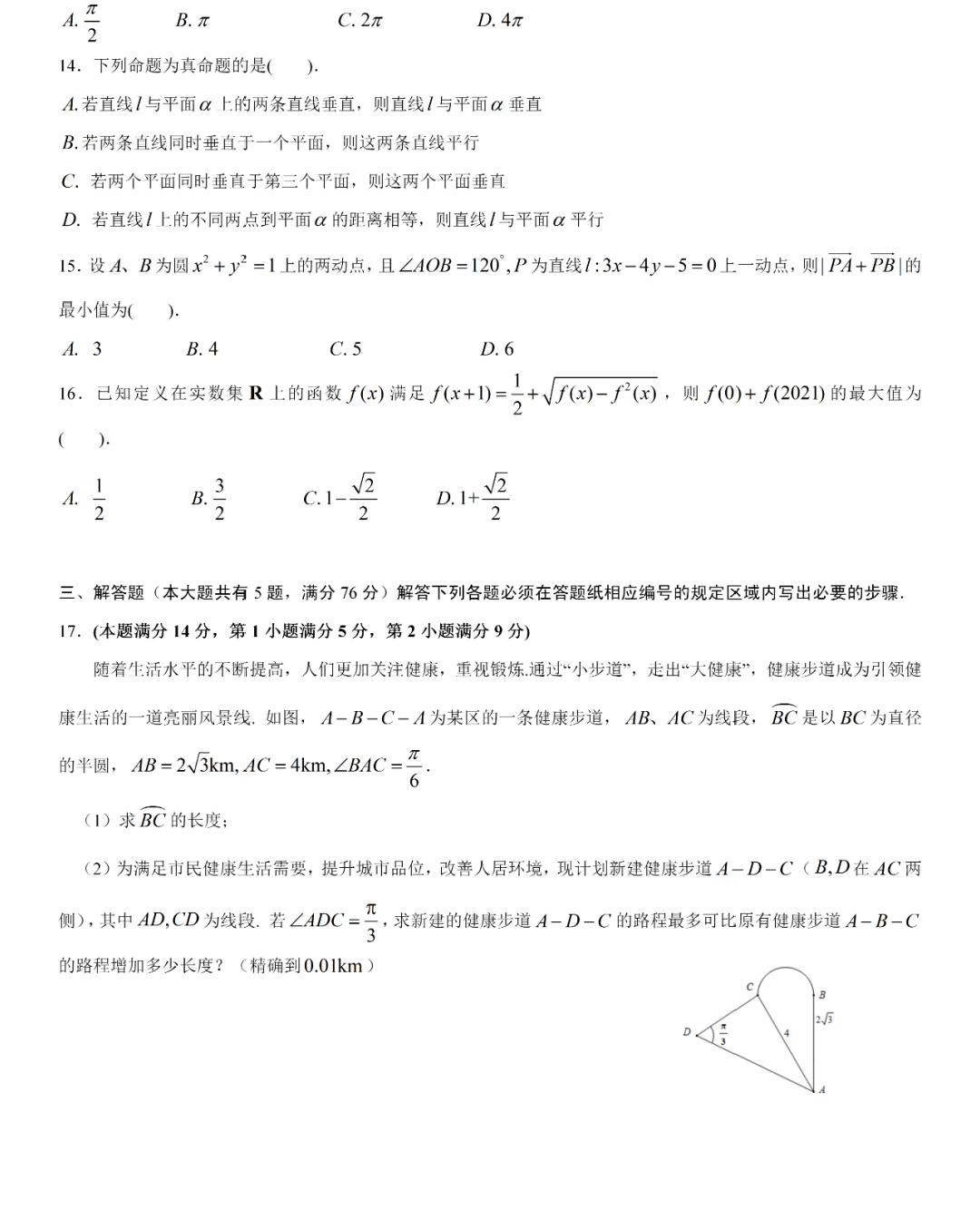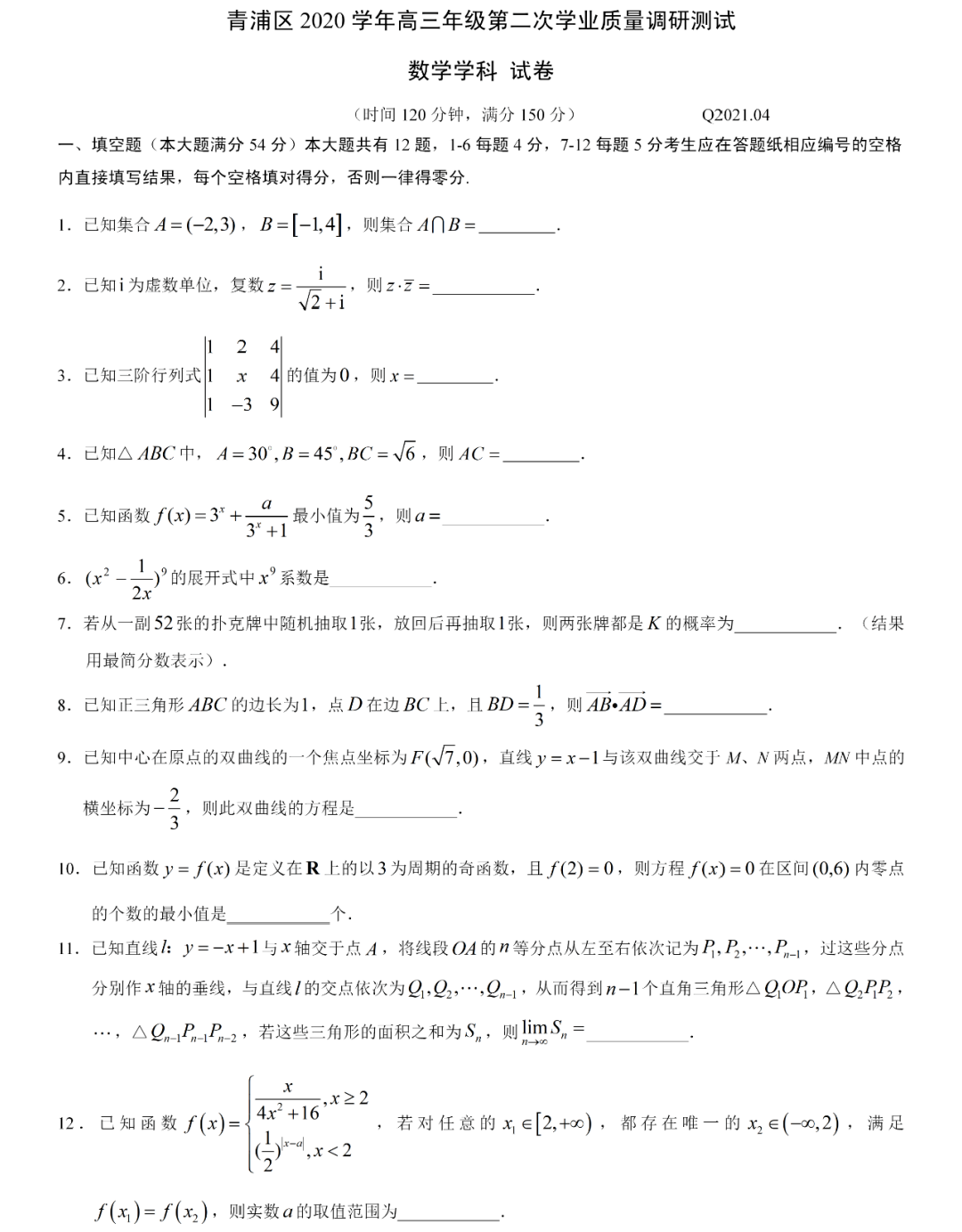 主頁 > 中學-中高考 > 高中試題 > 青浦區、金山區2021屆高三二模數學卷