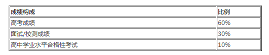 2017年綜評的最終成績是以“60%的高考總分+30%的學(xué)校面試成績+10%的高中學(xué)業(yè)水平考試成績”進(jìn)行錄取的。