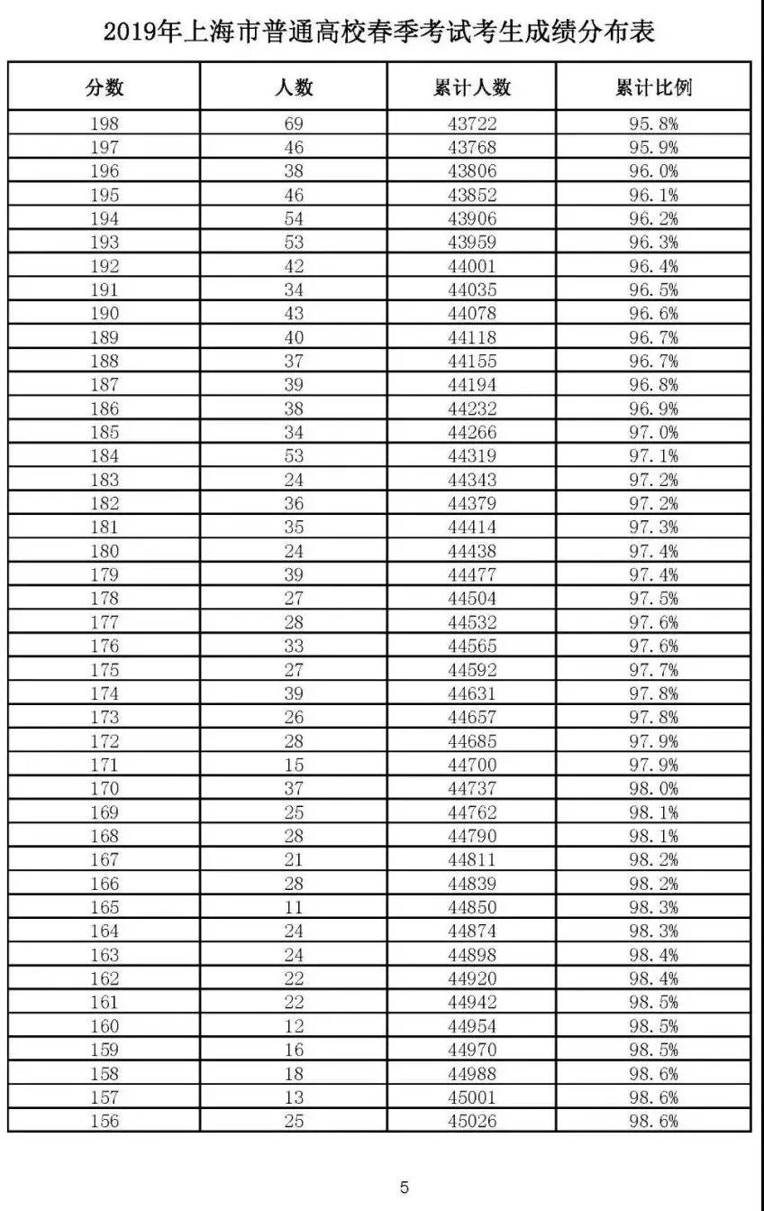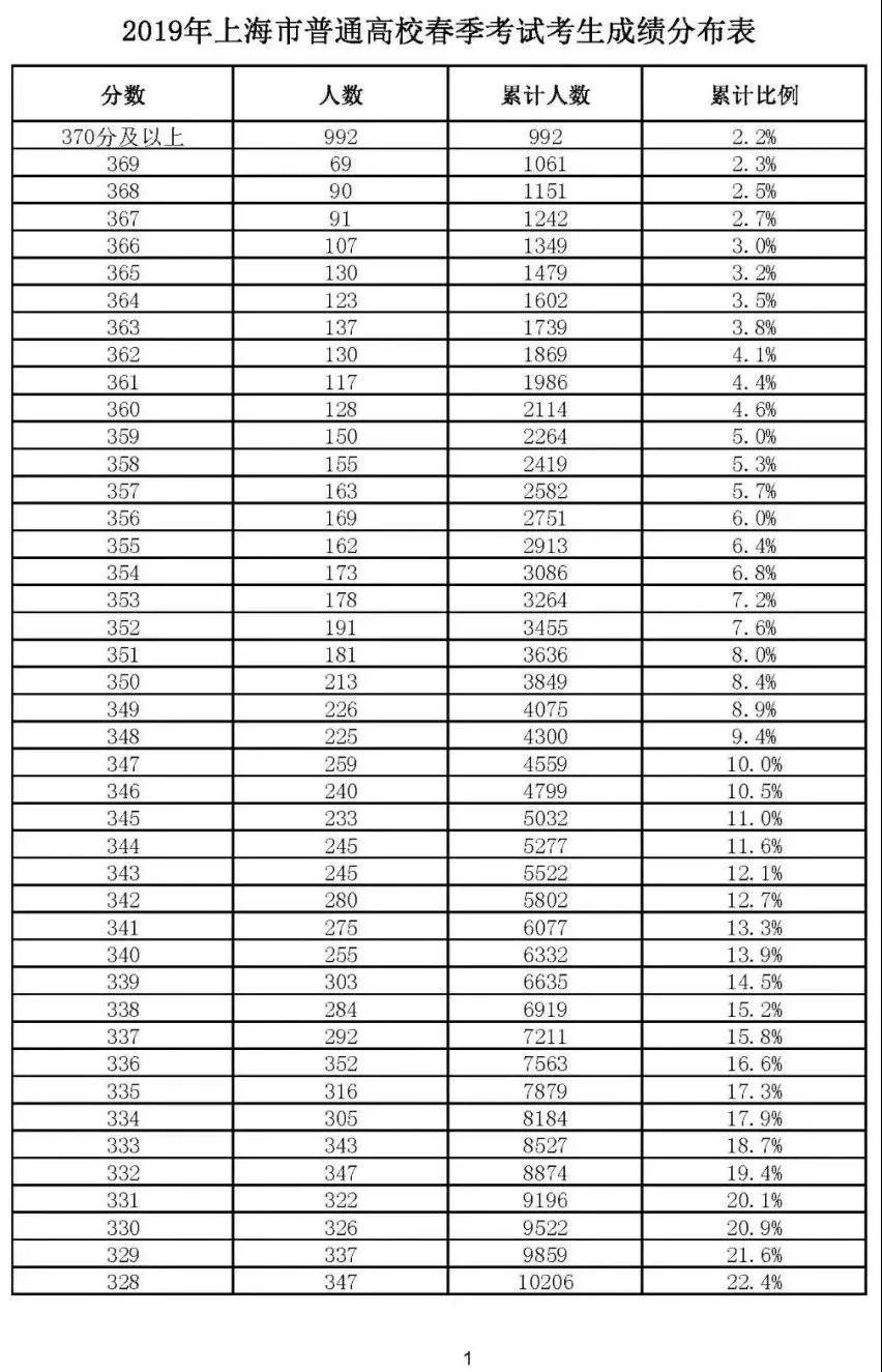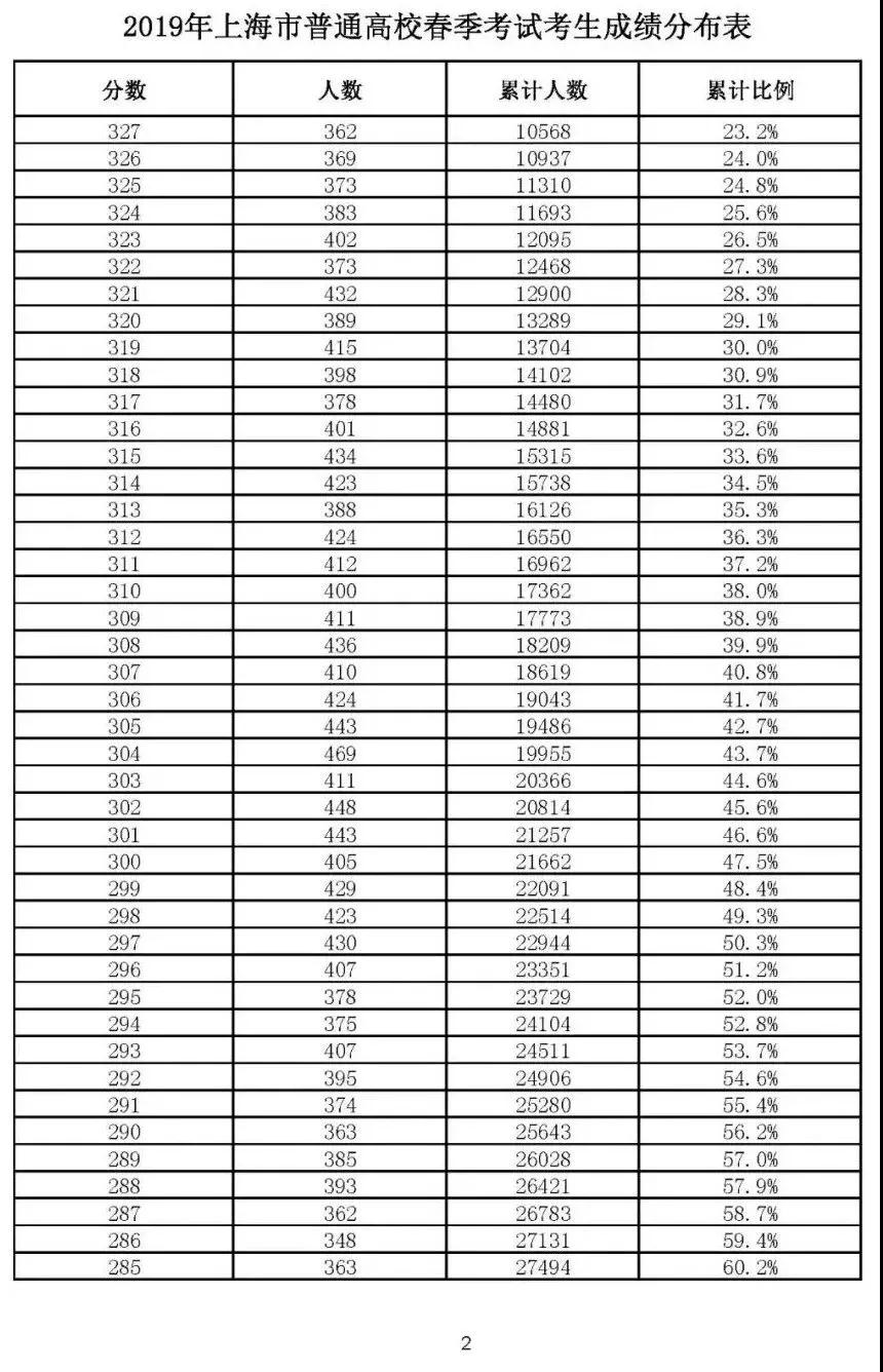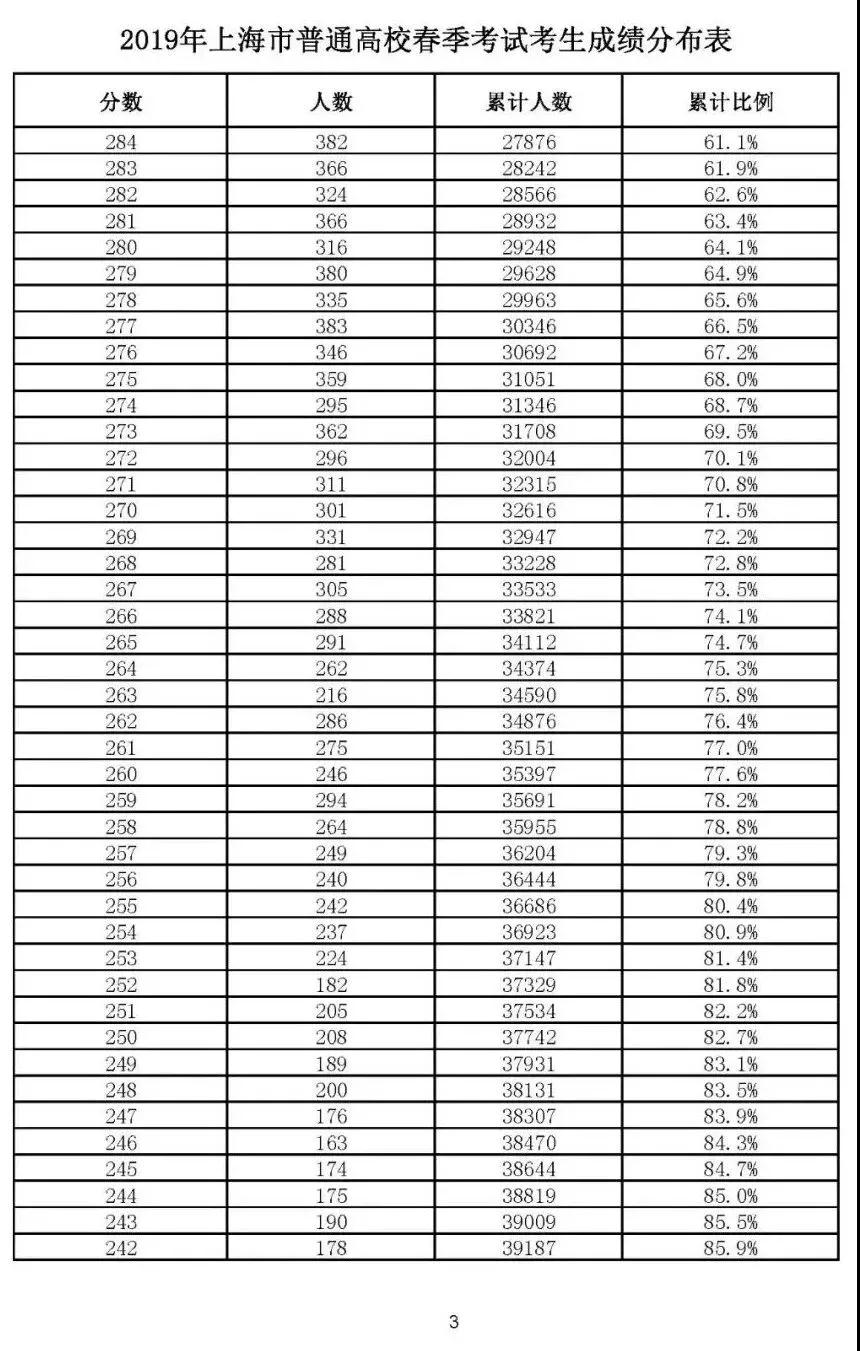 1)這張表能夠清晰的看出每個分數在上海全市的排名是多少